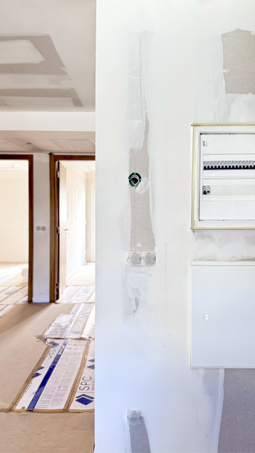 Nesta etapa, decorrem os últimos trabalhos no âmbito das instalações elétricas e hidráulicas, incluindo as redes de abastecimento de água, redes de incêndio e sistemas de drenagem de águas residuais e pluviais.